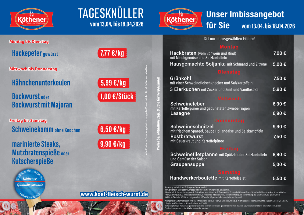 Sollten Ihnen veraltete Angebote angezeigt werden, laden Sie die Website bitte erneut.